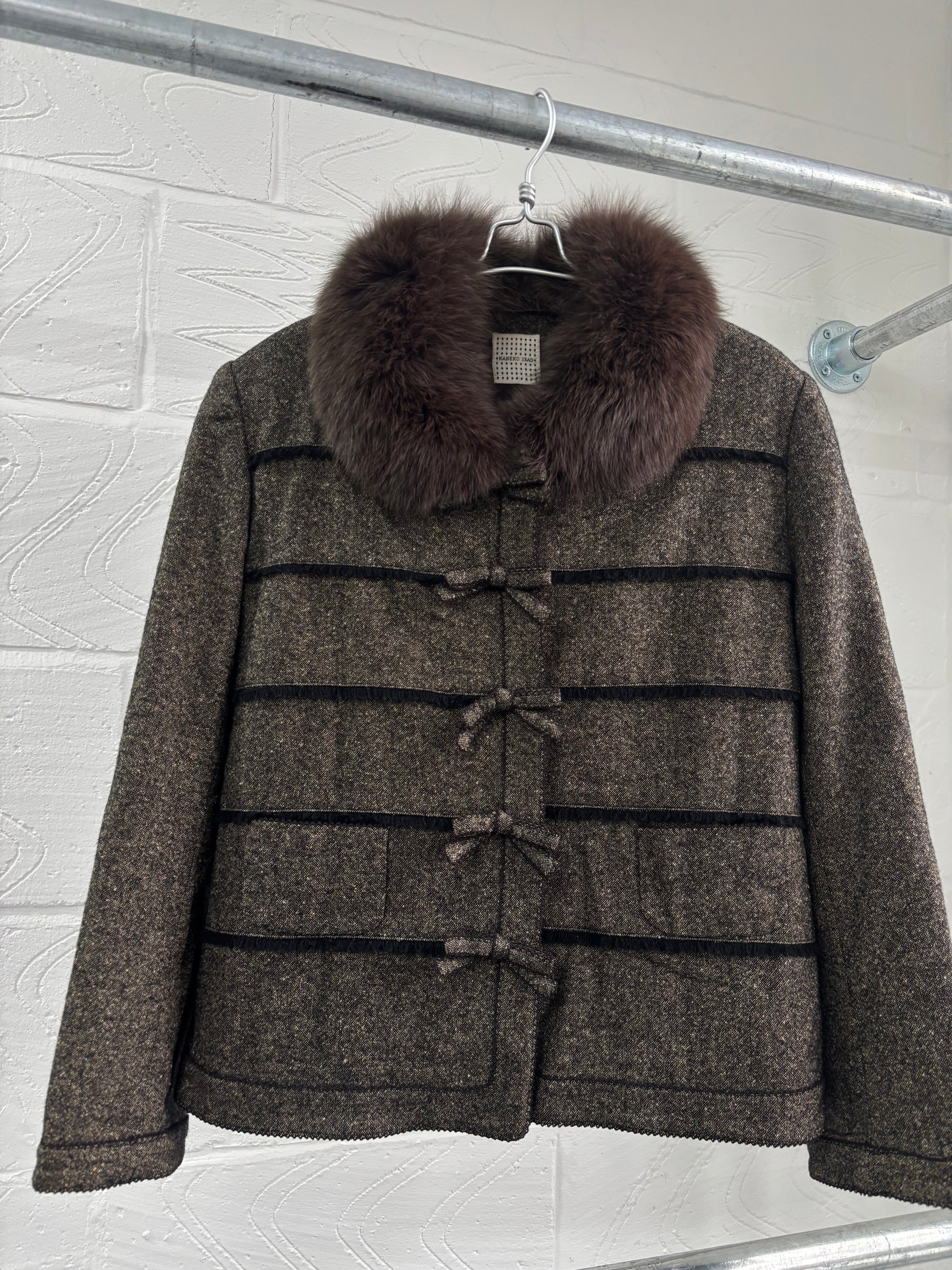 Japanese designer Kaneo Isao, silk and wool blend jacket with real fox fur collar and bow detailing. Sooo pretty !! <3333