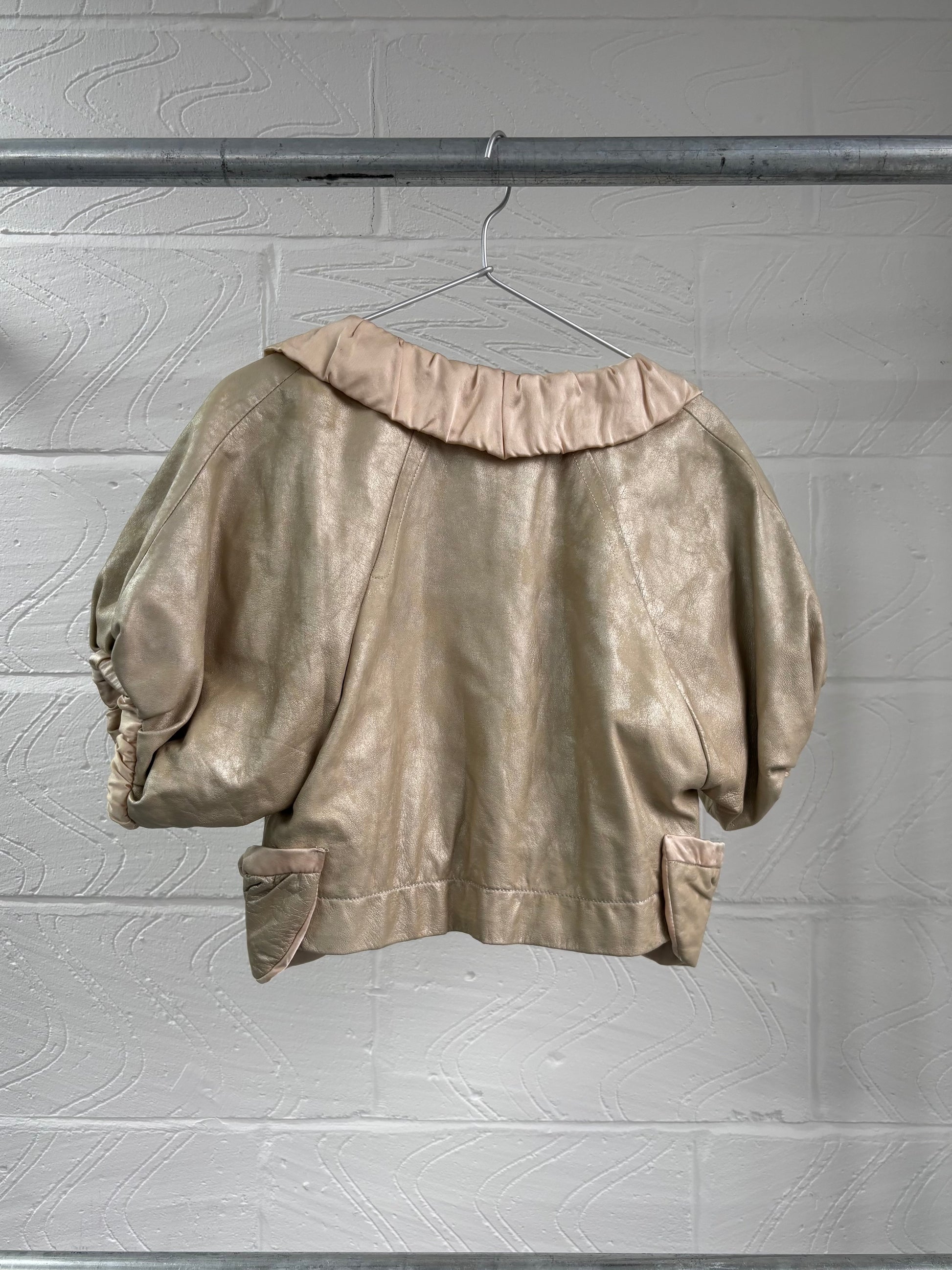 Beautiful puff sleeve cropped cardigan/bolero made from soft lamb leather.