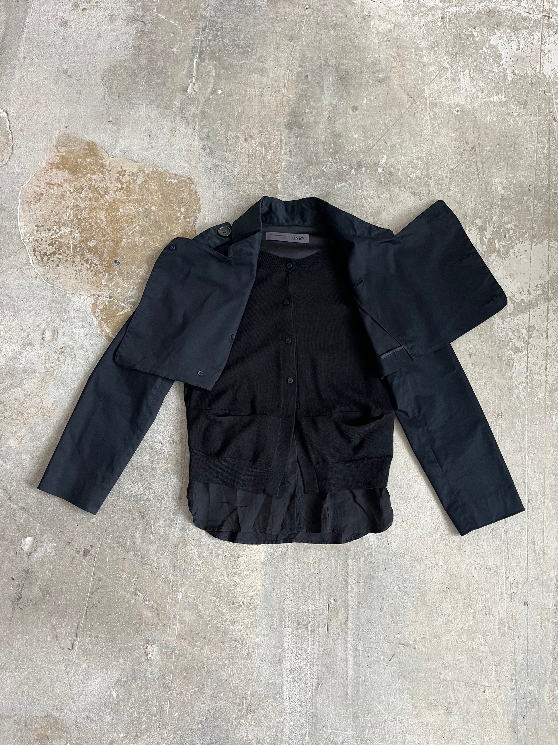Chinese branded insane three layered jacket, comprising of a thin shirt layer, knit layer and trench coat layer. So unique.