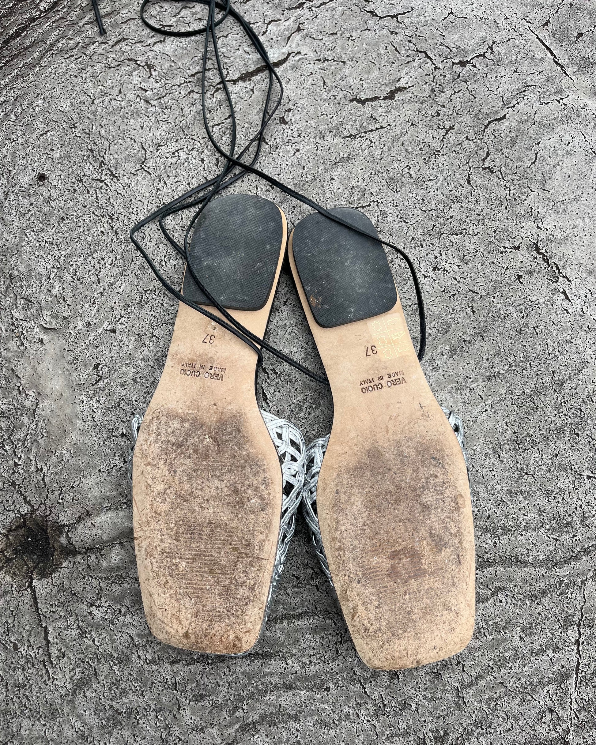 Super unique, silver leather lace up sandals by Malloni. Beautiful and intricate detailing. Straps can be wrapped around and worn in different ways.