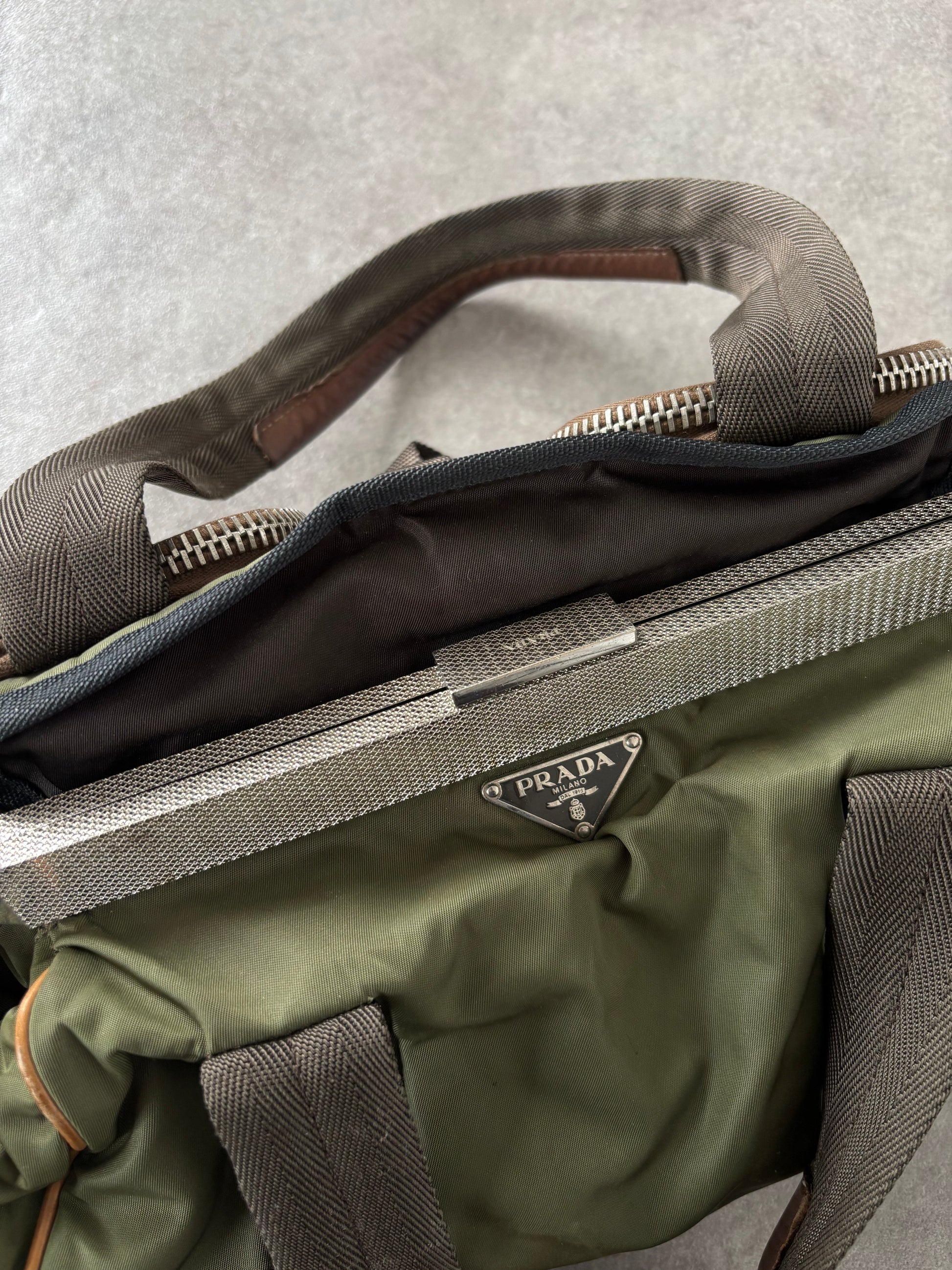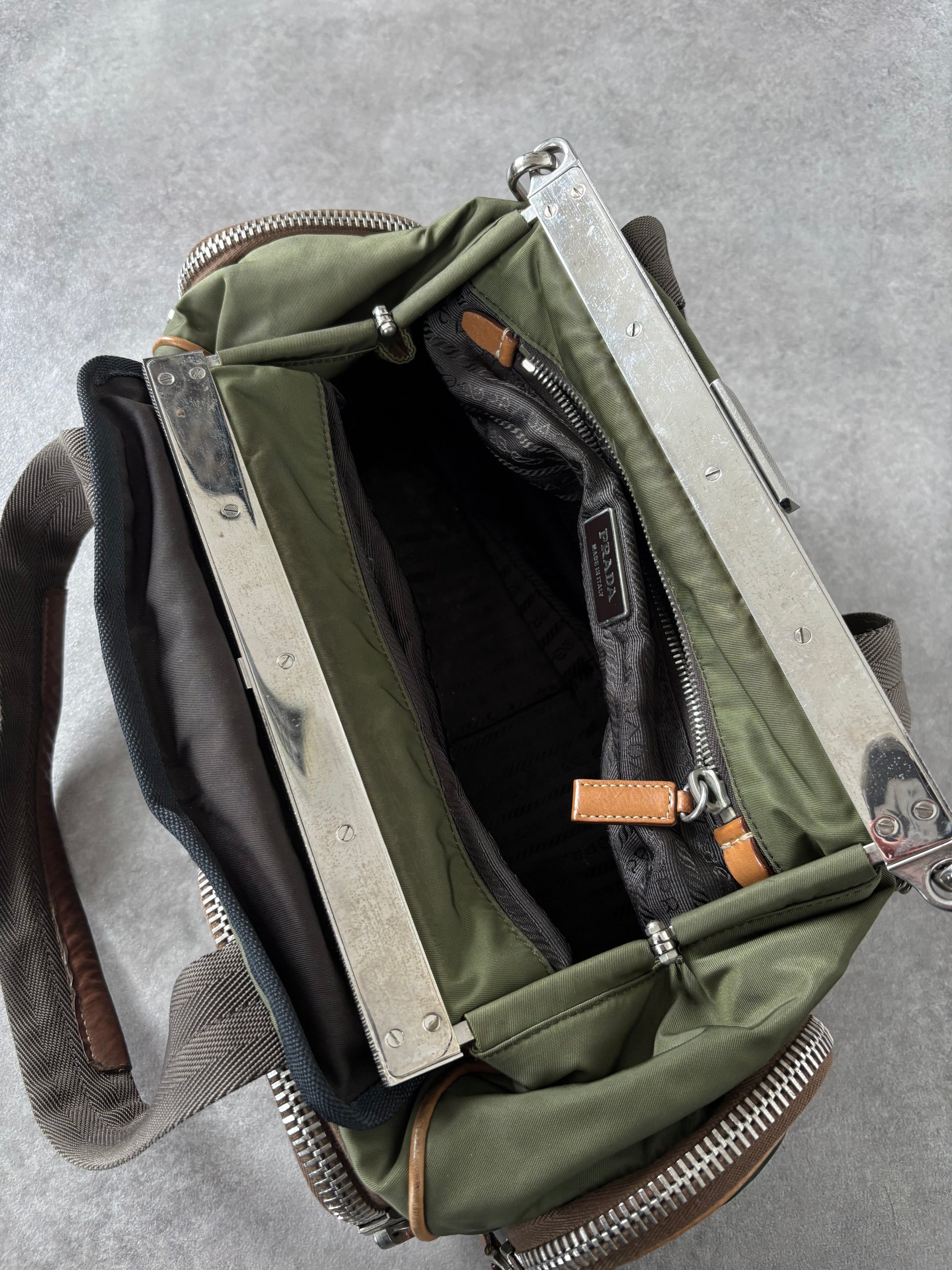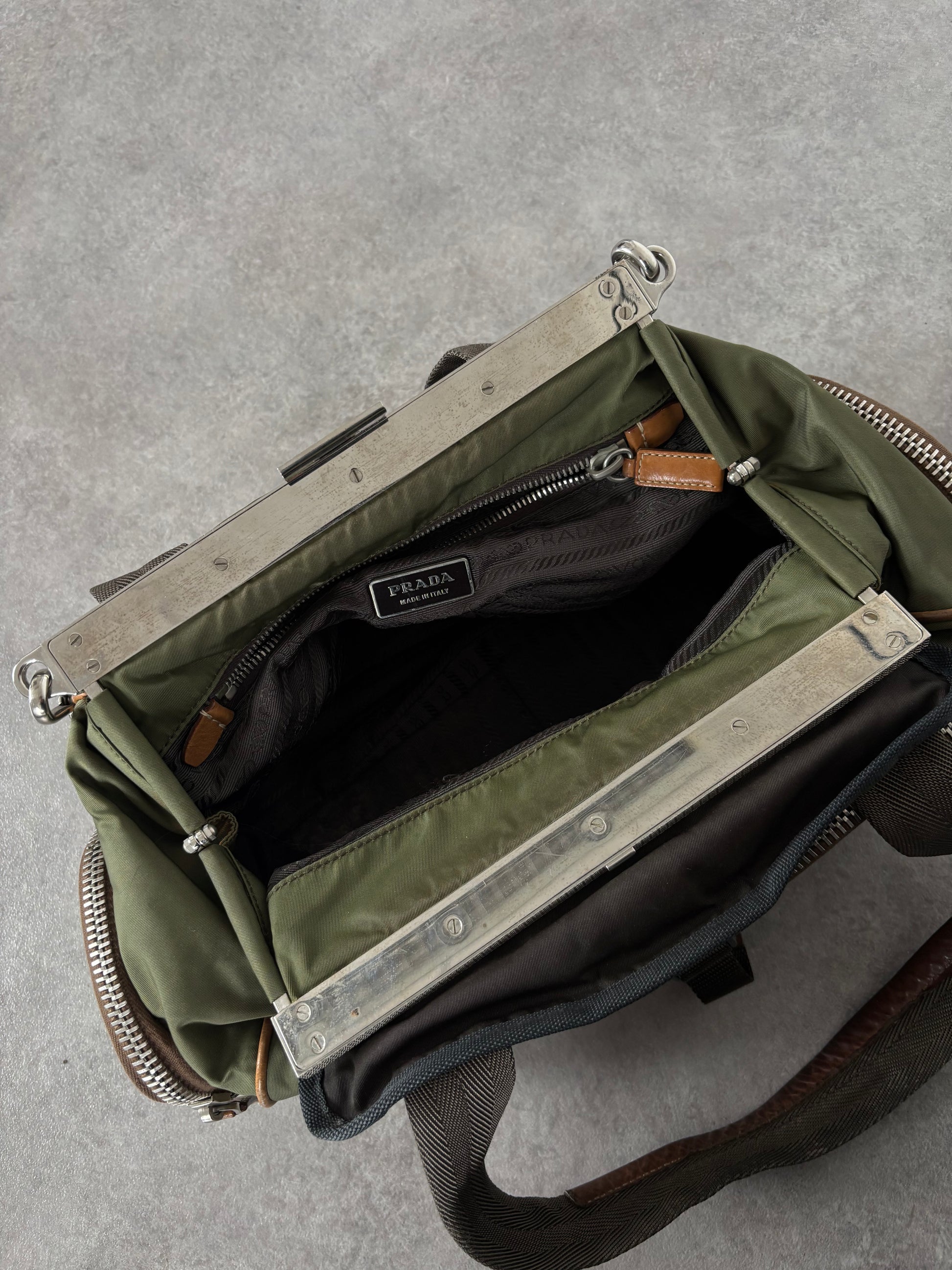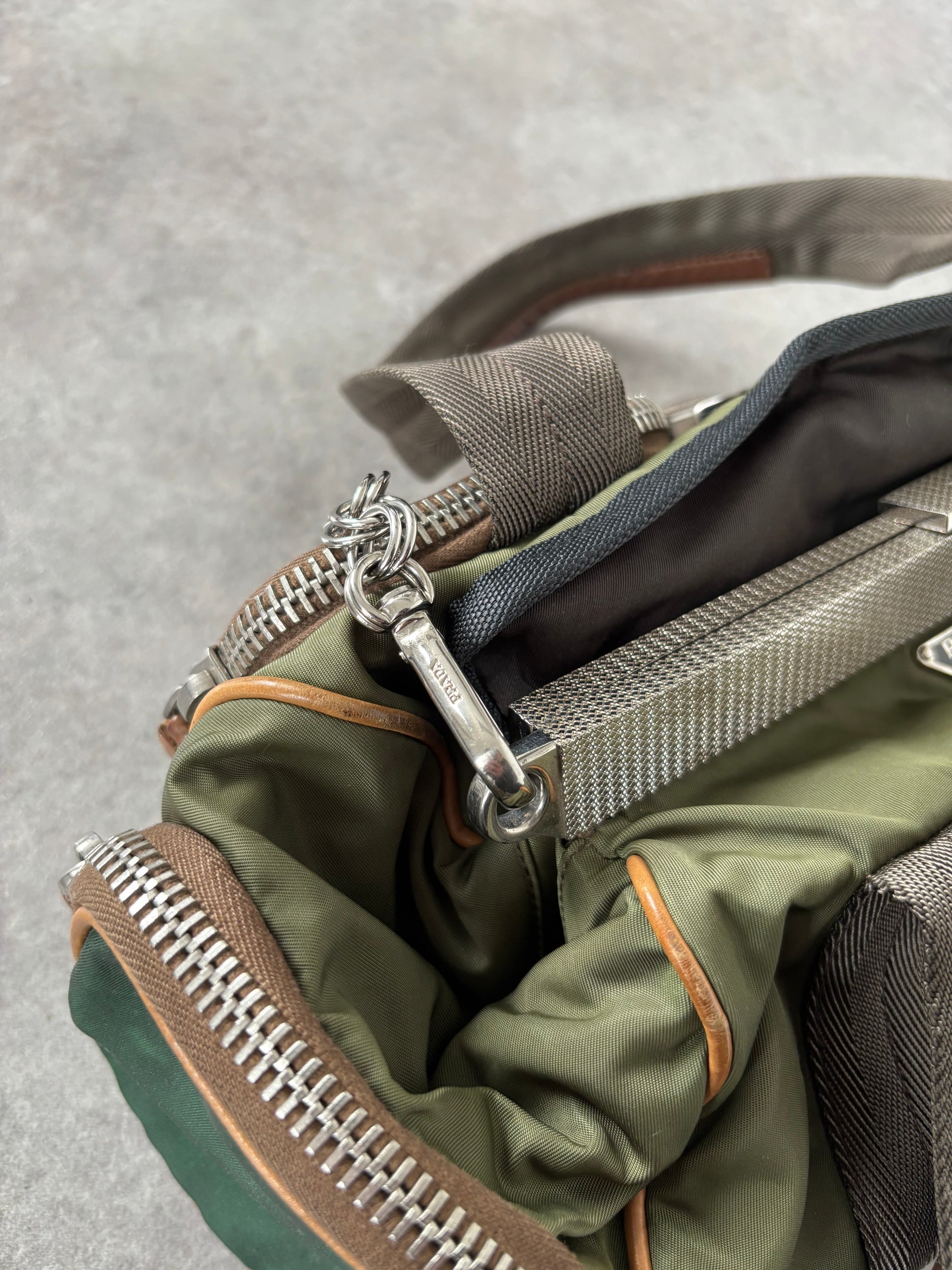 Beautiful Prada bag from SS2004. Incredible clasp and chain detailing. Utility/cargo style with 4 small pockets on the outside.