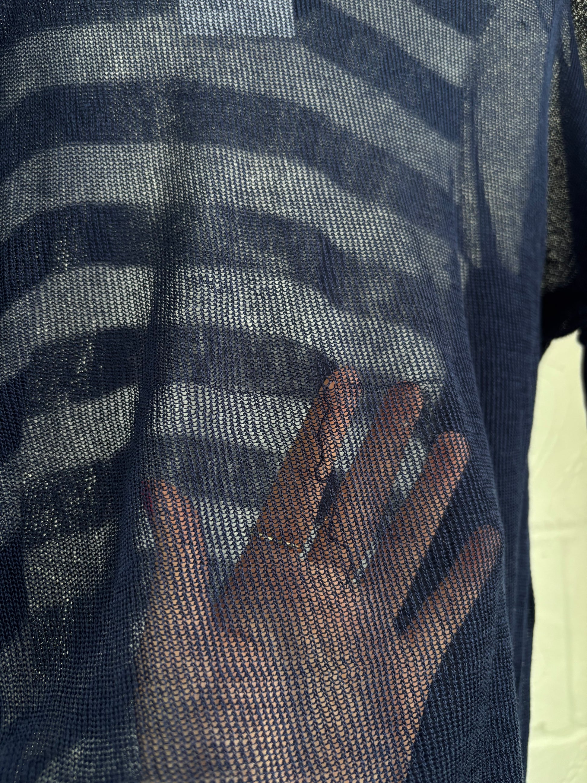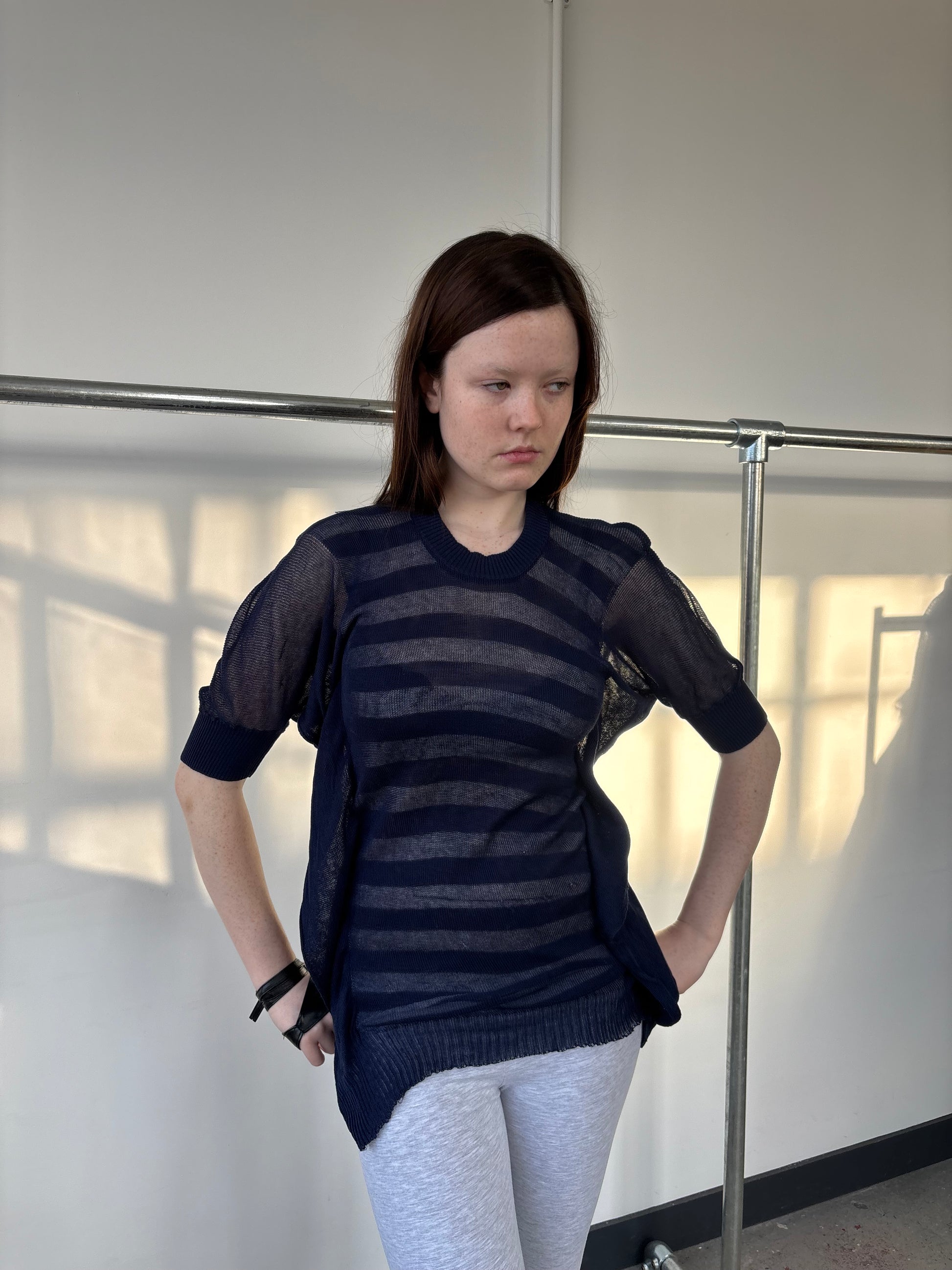 Junya Watanabe stripe sheer knit with batwing like side details. 100% cotton.
