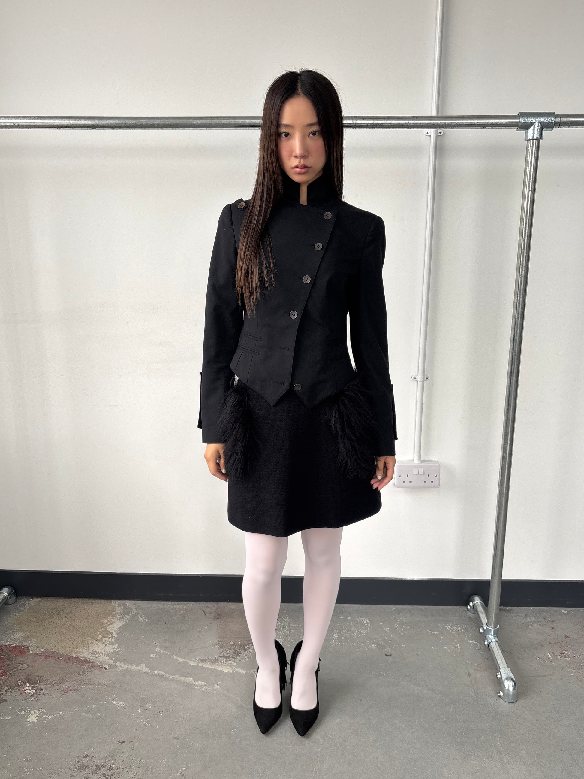 WOOL SKIRT WITH LAMB FUR DETAIL